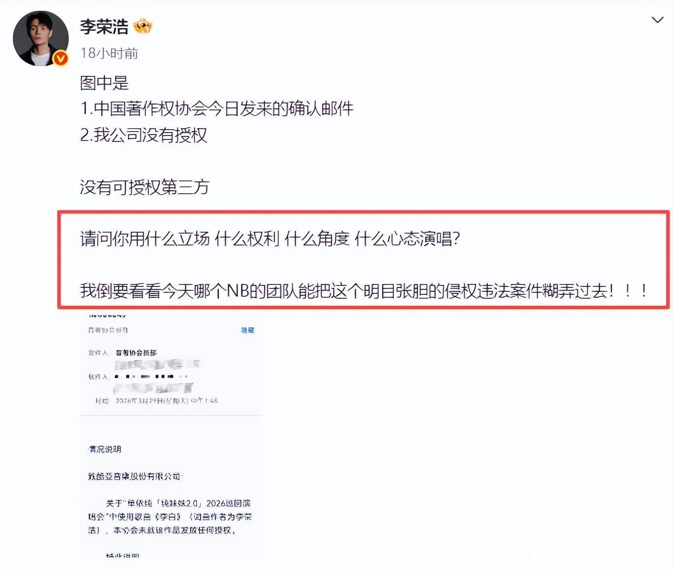李荣浩那四连问真实把东说念主问懵了:“什么态度、什么权益、什么角度、什么心态?”这话直指单依纯在深圳演唱会上强唱《李白》的事儿。明明之前音著协肯求被拒,她团队却硬着头皮上,过后还哭诉“不知情”,这甩锅姿态的确让东说念主难以领受。思往时李荣浩多捧她啊开云体育(中国)官方网站,可如今她画风突变,原创没几首,全靠魔改别东说念主的歌博眼球,那句痛苦的念白更是毁了原曲韵味,难怪原作家恼羞成怒。