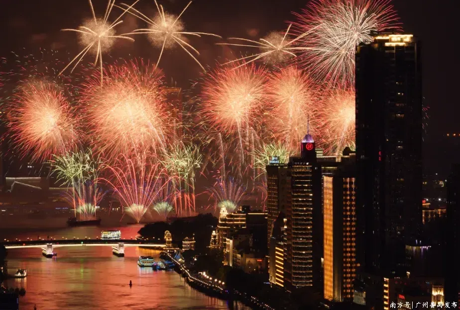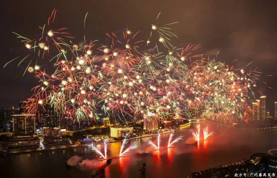2026年广州白鹅潭春节烟花汇演以“福马迎新春 湾区启新程”为主题,这场以天为幕、以水为台、以城为景的视听盛宴,不仅用漫天华彩焚烧了岭南新春的喜庆,更以璀璨光影描写出一幅广州在“十五五”开局之年奋楫争先、湾区联袂共赴新程的壮丽画卷。