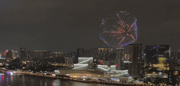 第三篇章“粤创异日 齐心筑梦”,聚焦湾区翻新动能。篇章通过一组充满异日感的造型,演绎湾区科创图景:“科技蓝瀑布”陡然垂下丝绦般的光瀑,如流星雨般说明虚幻,寓意发展势能奔涌;“科技之光”高空蓝色千轮怒放、低空洋红与银虎尾烟火千里稳铺展的明显画面伸开,寓意着城市高质地发展未艾方兴、生生不停,彰显广州容身实干、追求遏制、向新而行的气质底色。