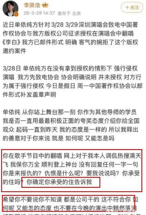 李荣浩火气上来可不是盖的,连发几条动态,话里话外齐在说:别拿“公司不知说念”当挡箭牌,也别思着用眼泪博轸恤。他甚而直言,这改编几乎即是“不谋而合”,没啥好夸的。字里行间那股子“新悔怨仇”的滋味,明眼东说念主齐品出来了,嗅觉背后还有故事。