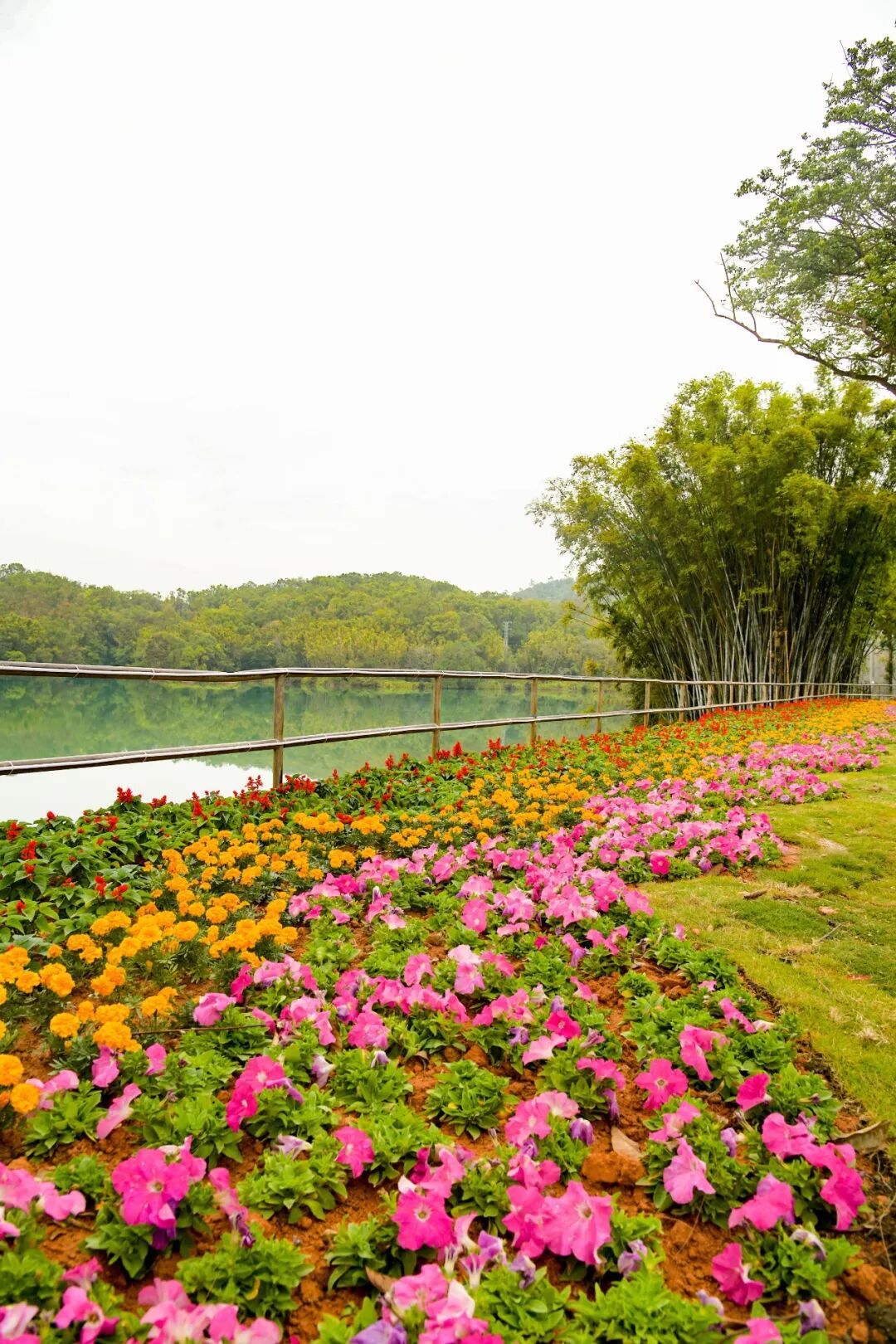景不雅方面,公园引申边坡复绿,铺设草坪约1.5万宽泛米。边坡顶部播撒波斯菊打造山巅花海,其余区域搭配一串红、孔雀草等多种时令花草,茶花、野牡丹等灌木点缀其间,更以黄金叶构植“石花山”象征,造成眉目丰富、季相分明的立体景不雅。照明系统也完周详面升级,环湖进口、泊车场等多处移交特质灯光,营造出安全又宜东谈主的夜间游览环境。